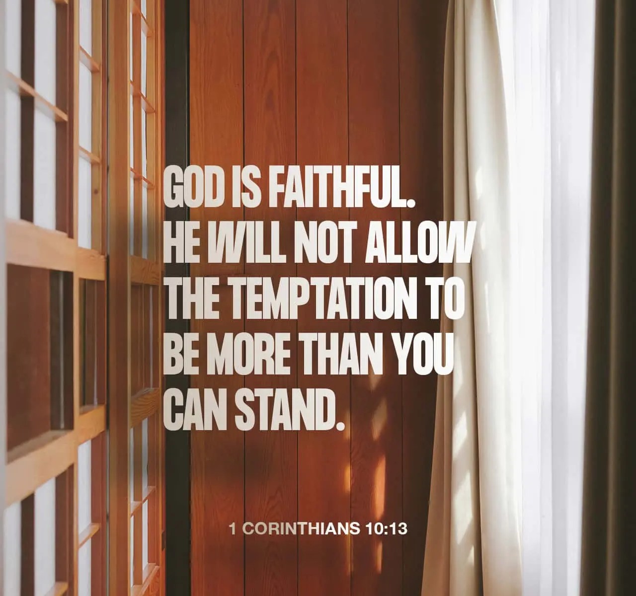 13 Vosotros no habéis sufrido ninguna tentación que no sea común al género humano. Pero Dios es fiel, y no permitirá que vosotros seáis tentados más allá de lo que podáis aguantar. Más bien, cuando llegue la tentación, él os dará también una salida a fin de que podáis resistir.