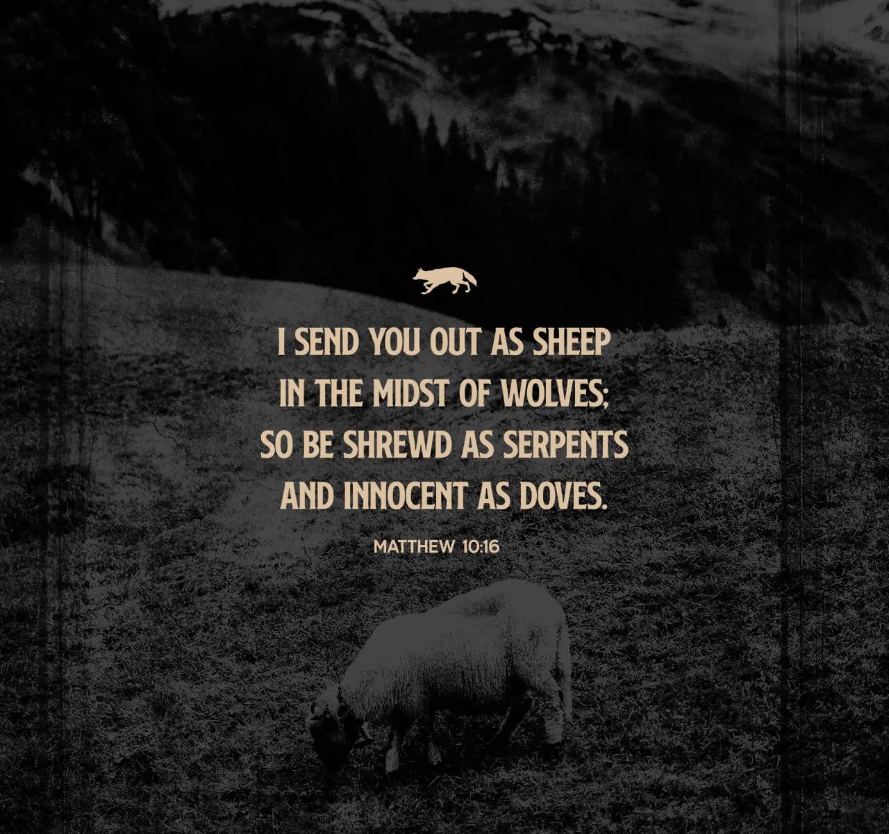 16 Behold, I send you out as sheep in the midst of wolves. Therefore be wise as serpents and harmless as doves.
