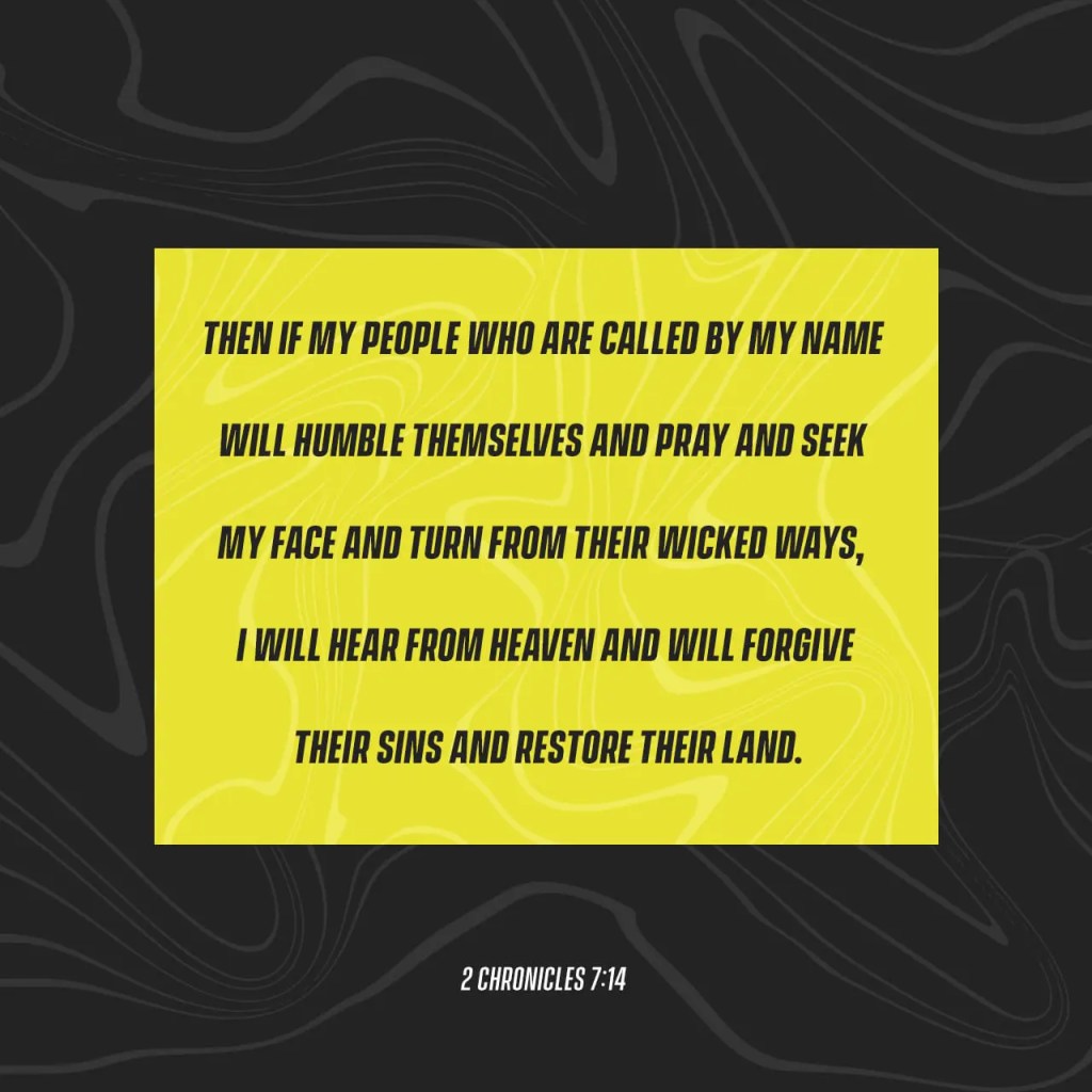 14 if My people who are called by My name will humble themselves, and pray and seek My face, and turn from their wicked ways, then I will hear from heaven, and will forgive their sin and heal their land.
