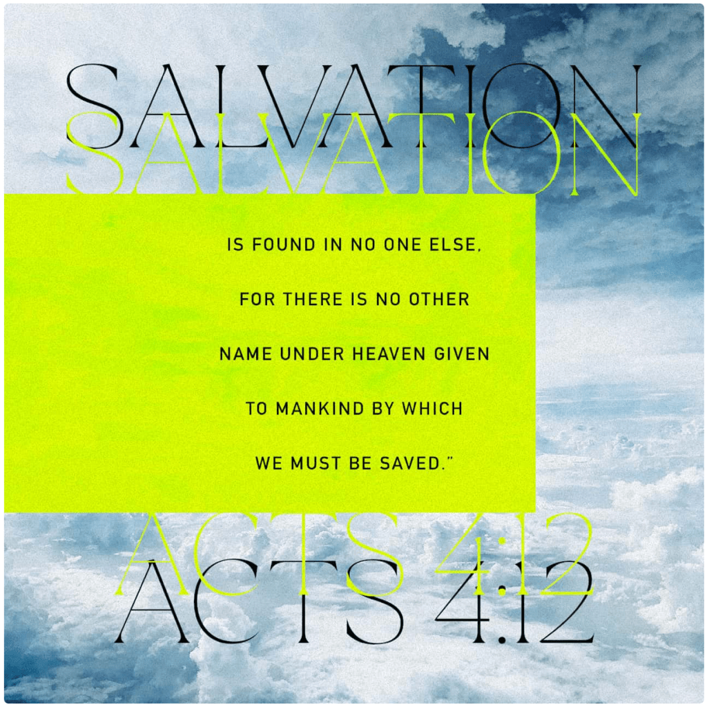 12 Nor is there salvation in any other, for there is no other name under heaven given among men by which we must be saved.”