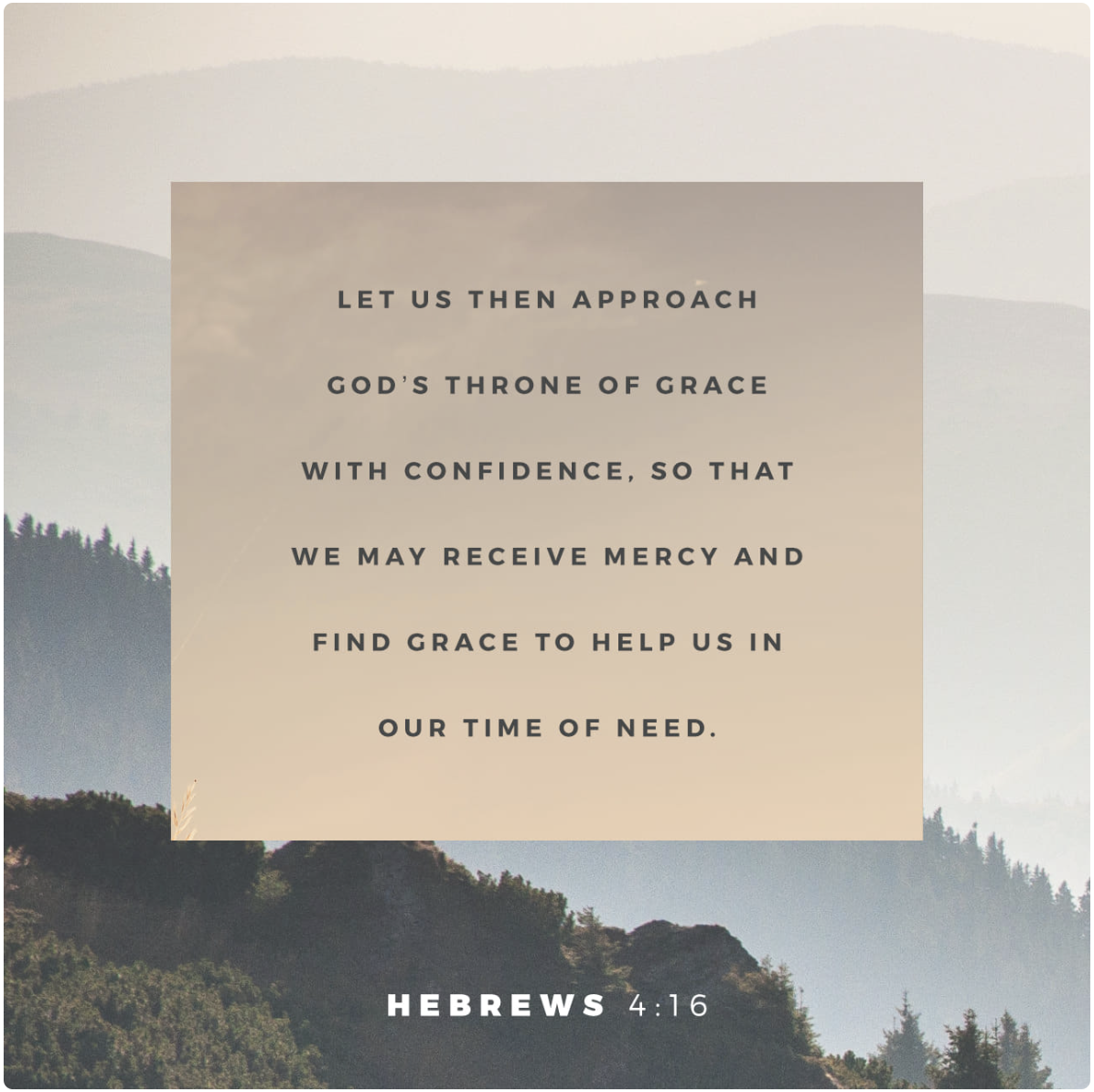 Hebrews 4:14-16 (NKJV) 14 Seeing then that we have a great High Priest who has passed through the heavens, Jesus the Son of God, let us hold fast our confession. 15 For we do not have a High Priest who cannot sympathize with our weaknesses, but was in all points tempted as we are, yet without sin. 16 Let us therefore come boldly to the throne of grace, that we may obtain mercy and find grace to help in time of need.