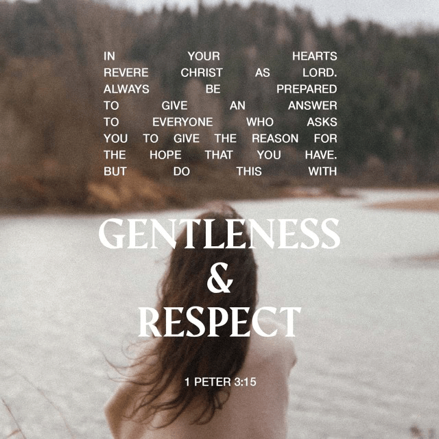 15 But sanctify the Lord God in your hearts, and always be ready to give a defense to everyone who asks you a reason for the hope that is in you, with meekness and fear;