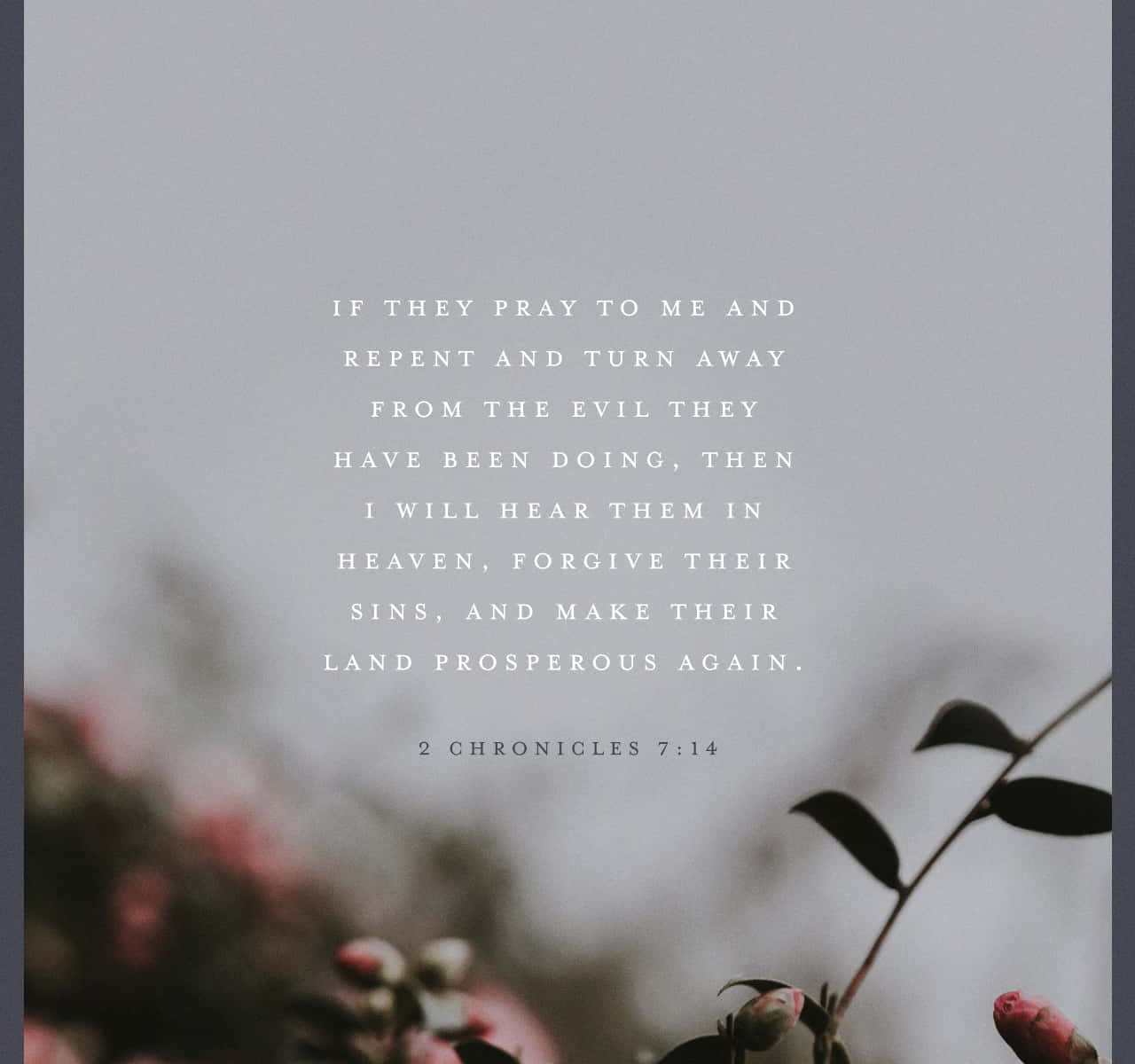 14 if My people who are called by My name will humble themselves, and pray and seek My face, and turn from their wicked ways, then I will hear from heaven, and will forgive their sin and heal their land.