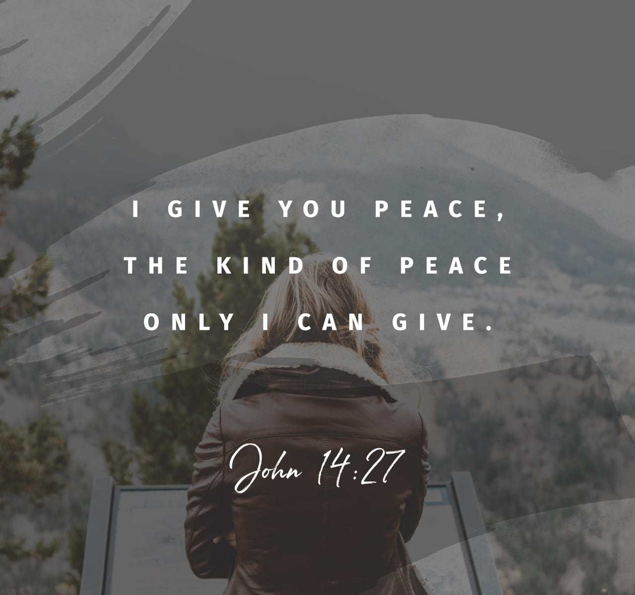 27 Peace I leave with you, My peace I give to you; not as the world gives do I give to you. Let not your heart be troubled, neither let it be afraid.