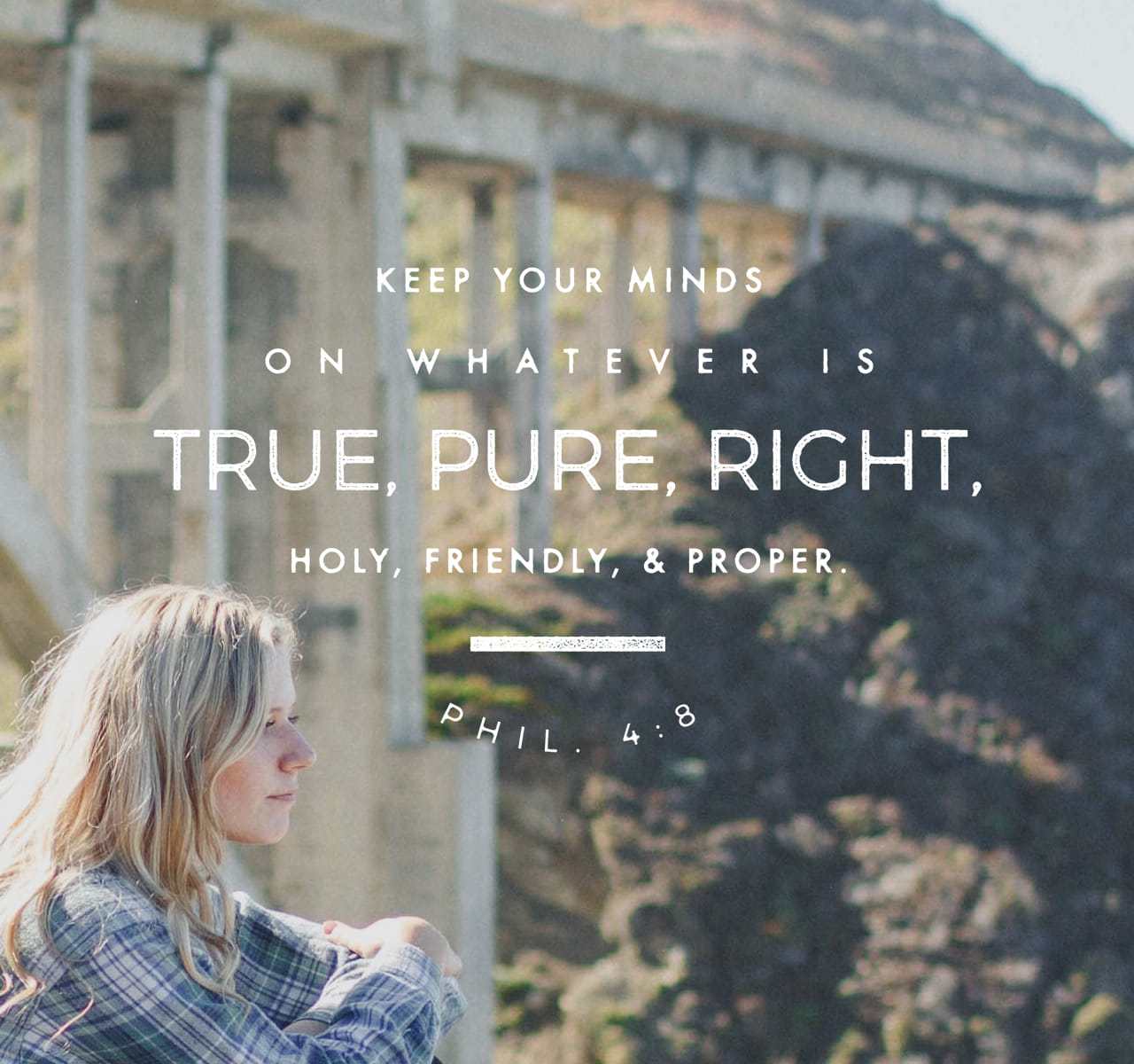 8 Finally, brethren, whatever things are true, whatever things are noble, whatever things are just, whatever things are pure, whatever things are lovely, whatever things are of good report, if there is any virtue and if there is anything praiseworthy—meditate on these things.