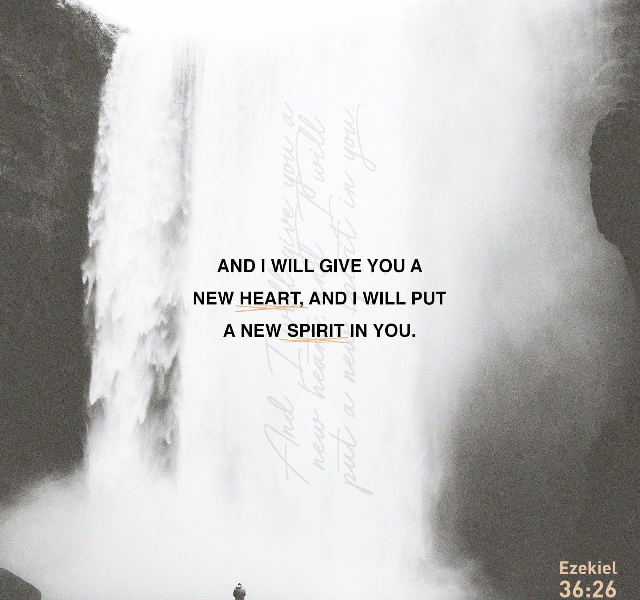 26 I will give you a new heart and put a new spirit within you; I will take the heart of stone out of your flesh and give you a heart of flesh.