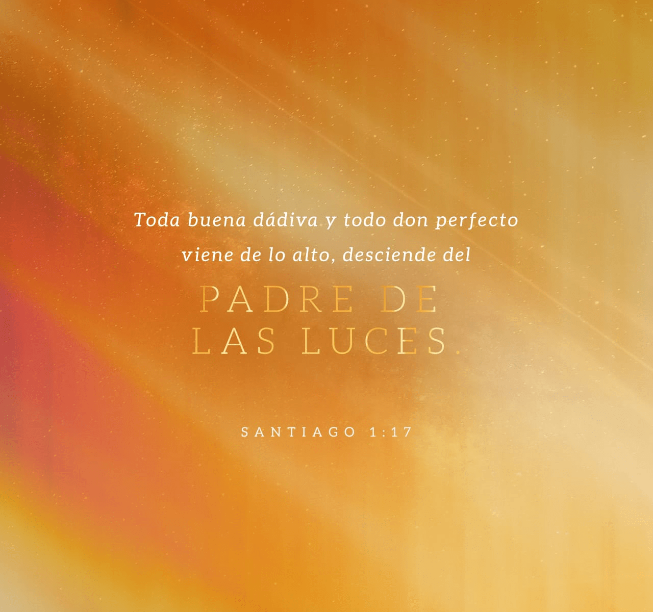 17 Toda buena dádiva y todo don perfecto descienden de lo alto, donde está el Padre que creó las lumbreras celestes, y que no cambia como los astros ni se mueve como las sombras.