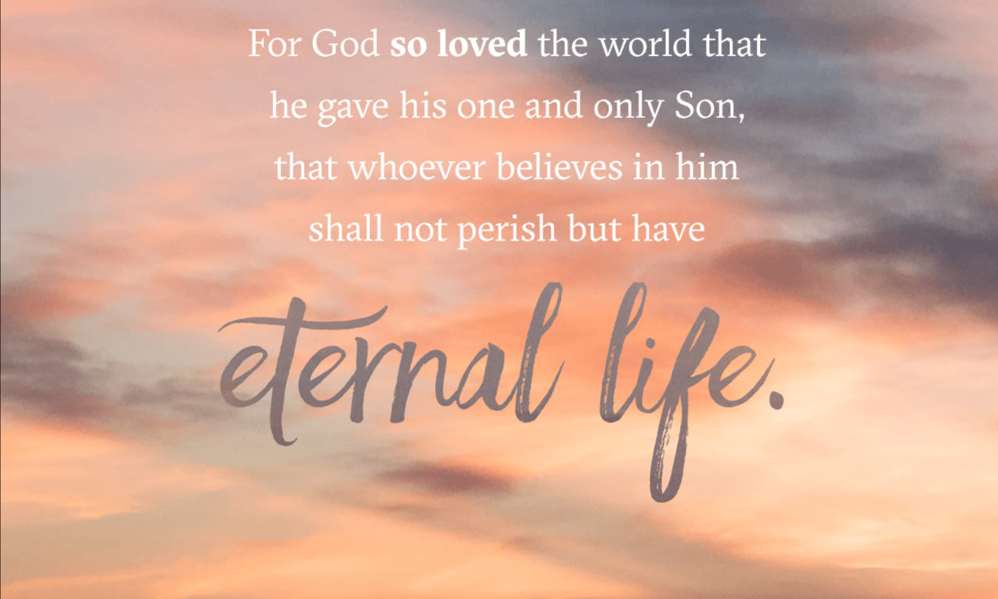 16 Porque tanto amó Dios al mundo que dio a su Hijo unigénito, para que todo el que cree en él no se pierda, sino que tenga vida eterna.