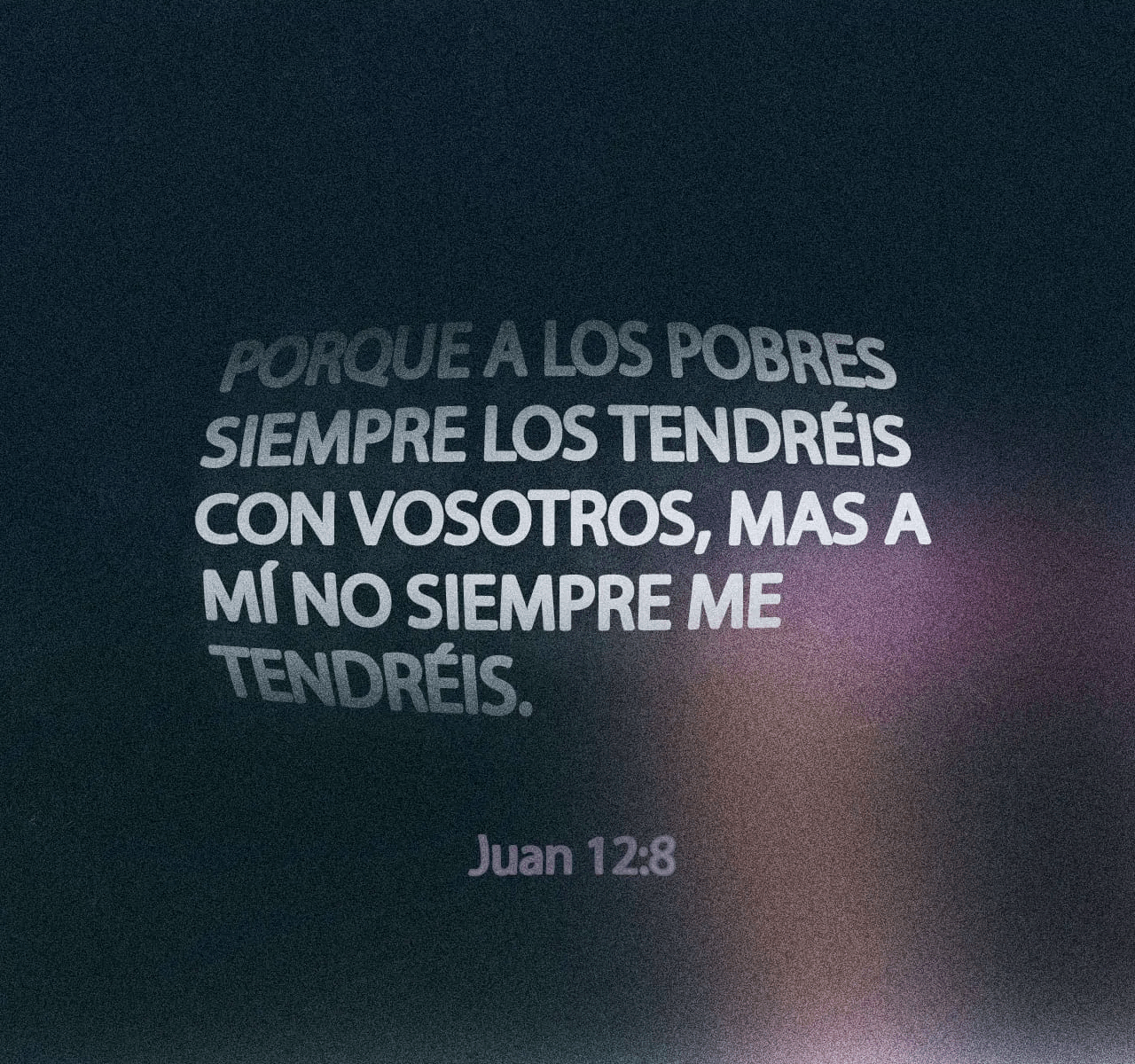 Juan 12:1-8 (NVI) 1 Seis días antes de la Pascua llegó Jesús a Betania, donde vivía Lázaro, a quien Jesús había resucitado. 2 Allí se dio una cena en honor de Jesús. Marta servía, y Lázaro era uno de los que estaban a la mesa con él. 3 María tomó entonces como medio litro de nardo puro, que era un perfume muy caro, y lo derramó sobre los pies de Jesús, secándoselos luego con sus cabellos. Y la casa se llenó de la fragancia del perfume. 4 Judas Iscariote, que era uno de sus discípulos y que más tarde lo traicionaría, objetó: 5 ―¿Por qué no se vendió este perfume, que vale muchísimo dinero, para dárselo a los pobres? 6 Dijo esto no porque se interesara por los pobres, sino porque era un ladrón y, como tenía a su cargo la bolsa del dinero, acostumbraba a robar lo que echaban en ella. 7 ―Déjala en paz —respondió Jesús—. Ella ha estado guardando este perfume para el día de mi sepultura. 8 A los pobres siempre los tendréis con vosotros, pero a mí no siempre me tendréis.