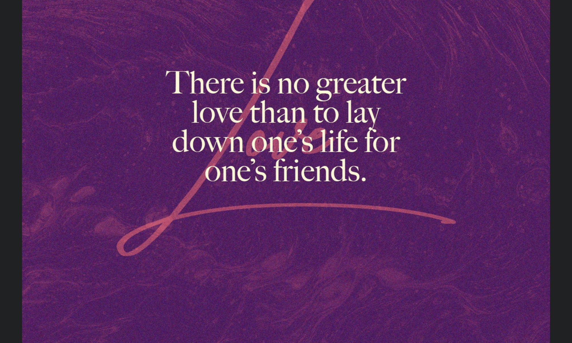 13 Greater love has no one than this, than to lay down one’s life for his friends.