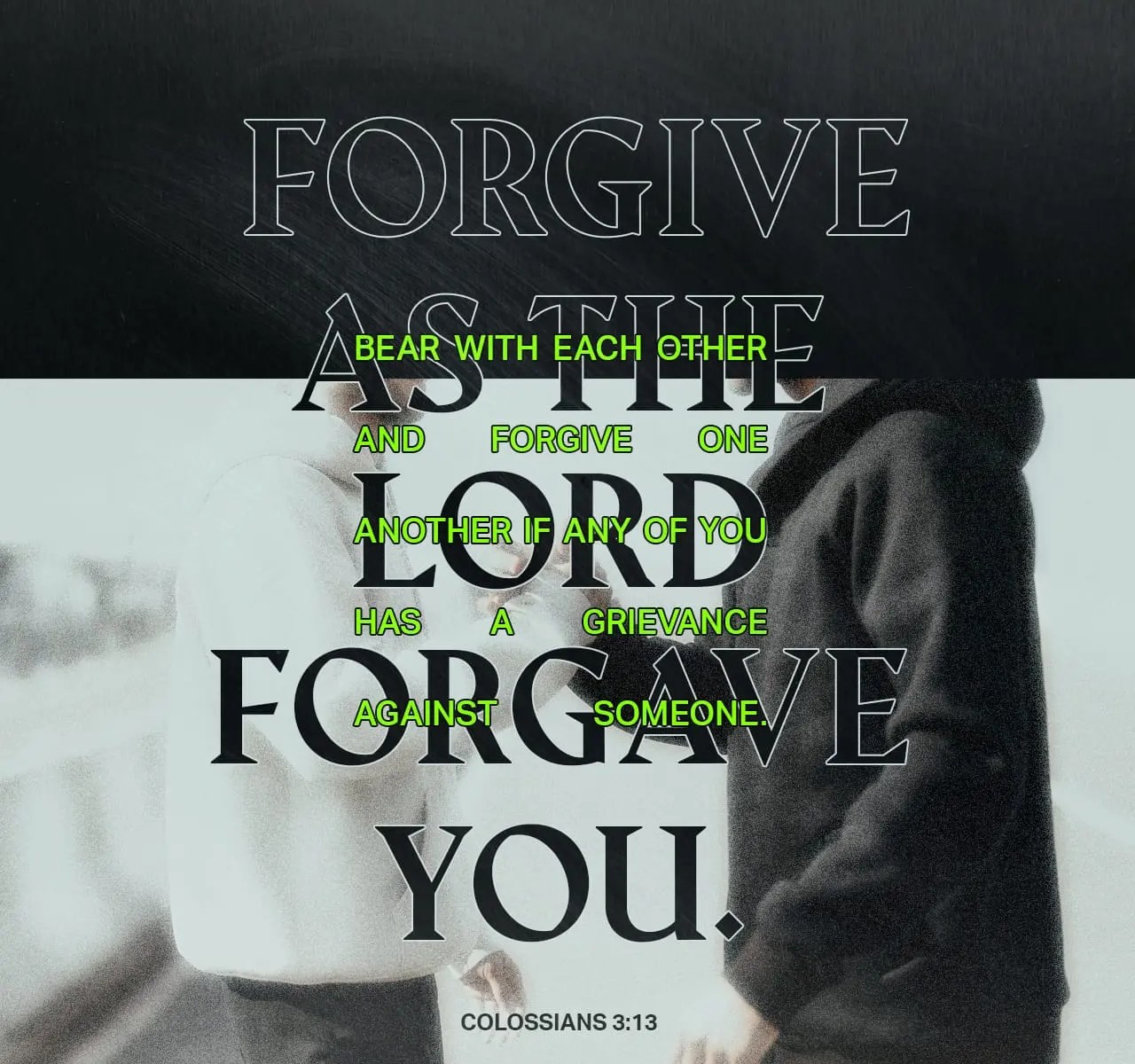 13 bearing with one another, and forgiving one another, if anyone has a complaint against another; even as Christ forgave you, so you also must do.