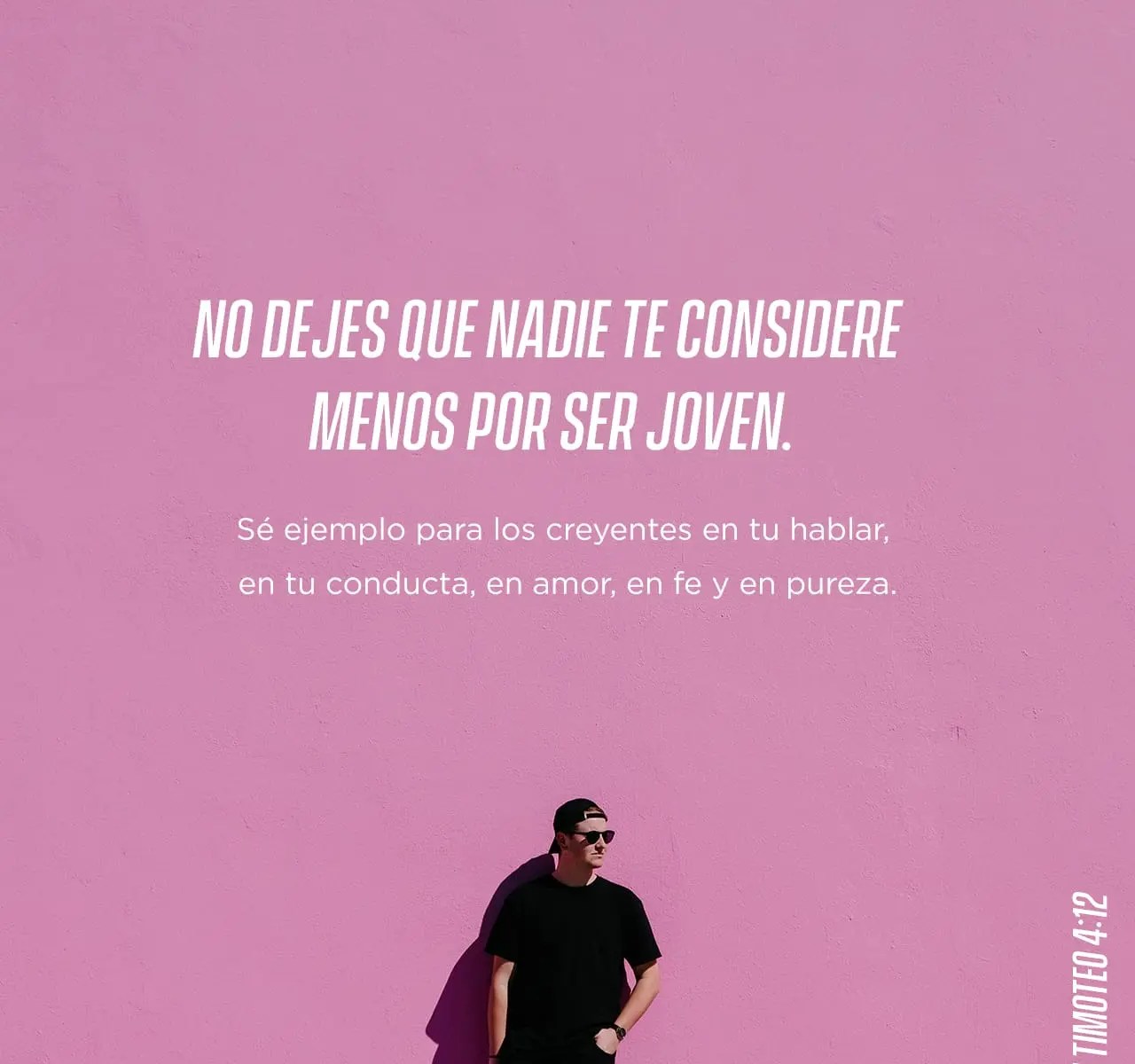 12 Que nadie te menosprecie por ser joven. Al contrario, que los creyentes vean en ti un ejemplo a seguir en la manera de hablar, en la conducta, y en amor, fe y pureza.