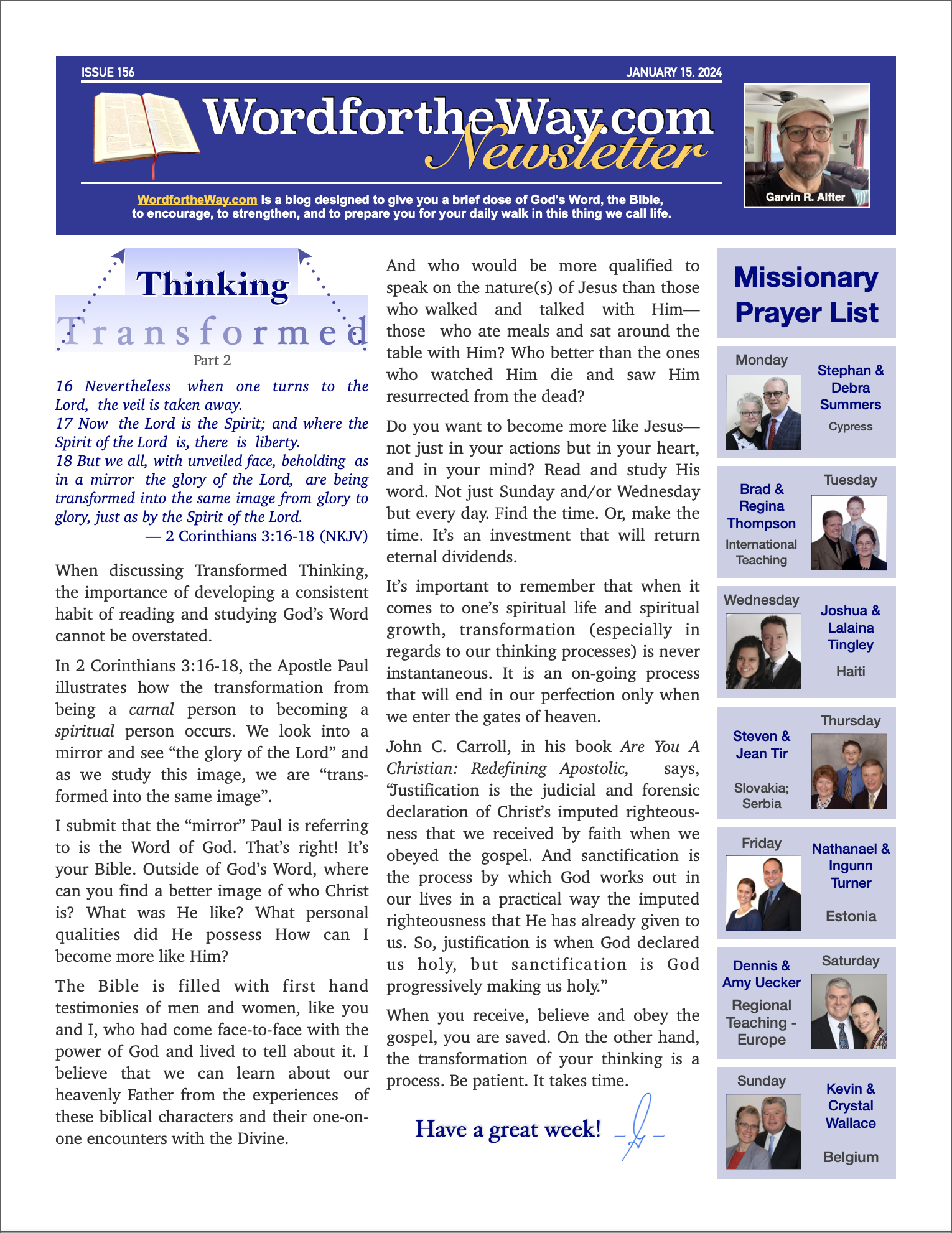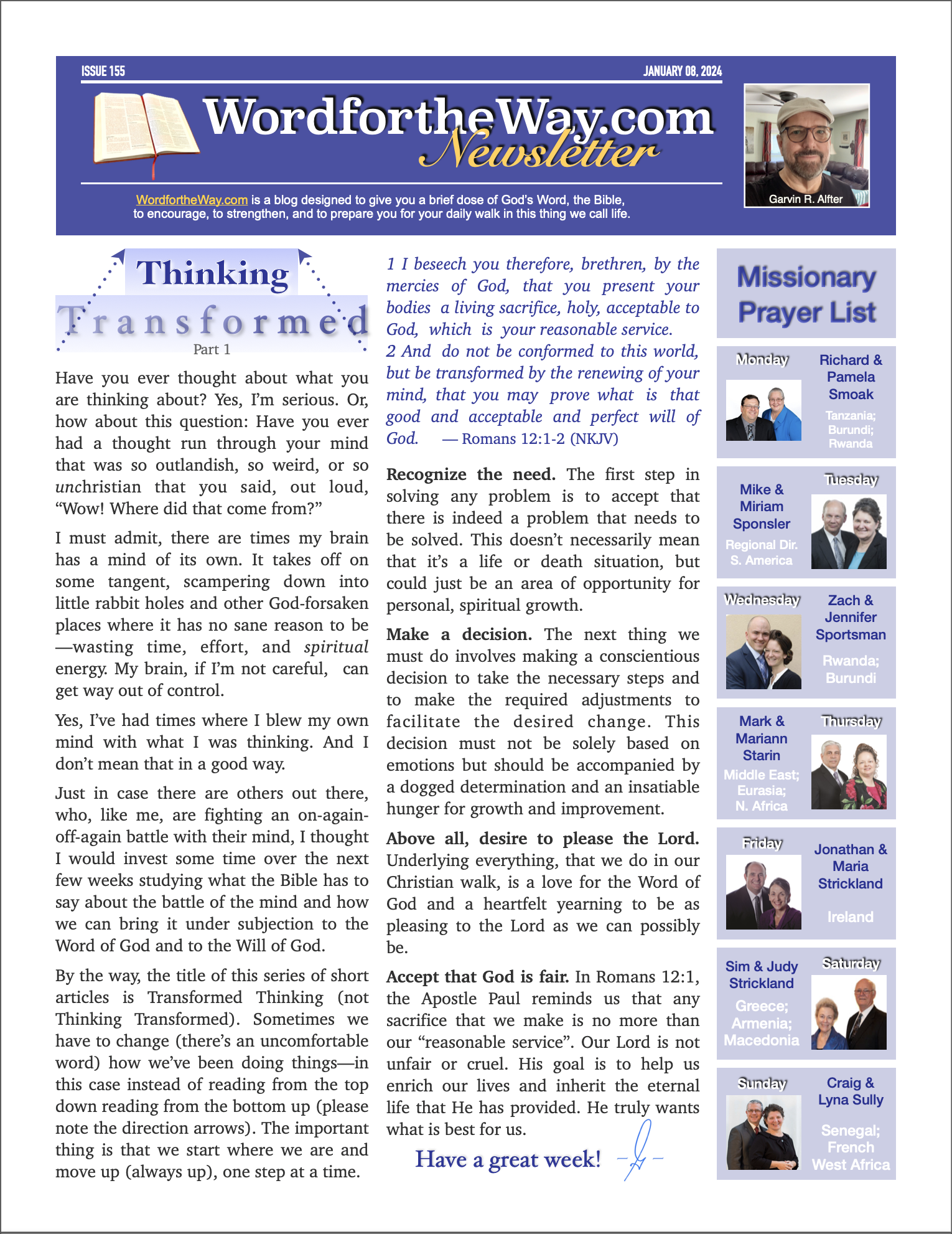 Word for the Way is a blog designed to give you a brief dose of God’s Word, the Bible — to encourage, to strengthen, and to prepare you for your daily walk in this thing we call life.